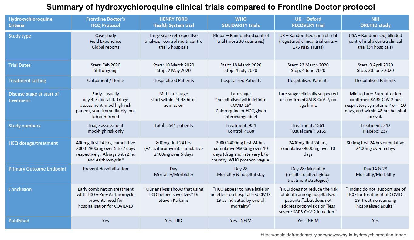 Since this time, global clinical trial conducted with HCQ for COVID-19 have used “lethal doses” of HCQ, timed in late stage illness and only in hospitalised patients compared to the timing, dose and combination with zinc, used successfully by frontline doctors globally. Alarmingly, health officials have not replicated the successful treatment protocols using HCQ.
