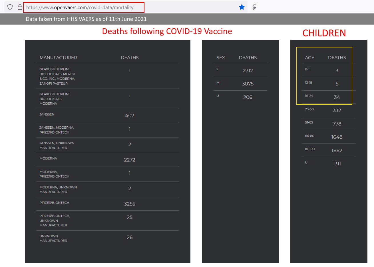 The post COVID-19 vaccine death and injury statistics include children, in the population group that has a 99.99% survival rate. [8, 9,10]