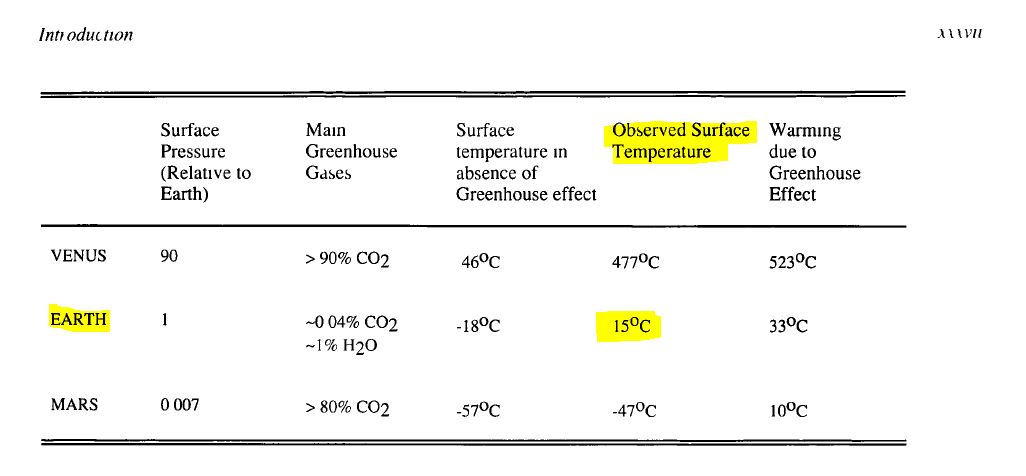- The first IPCC Assessment Report was released in 1990 which “underlined the importance of climate change as a challenge with global consequences and requiring international cooperation.” On page xxxvii in the Table of this 1990 report it lists the “Observed Surface Temperature” of Earth as 15 degrees Celsius – see Table on page 37 (xxxvii),