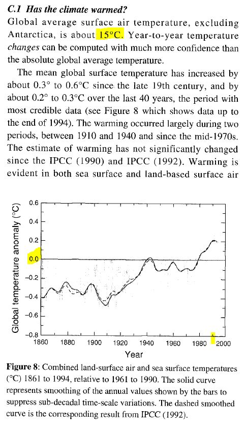 - and again in 1995 the IPCC Report on page 26 & 57 stated 15 degrees C. [5]